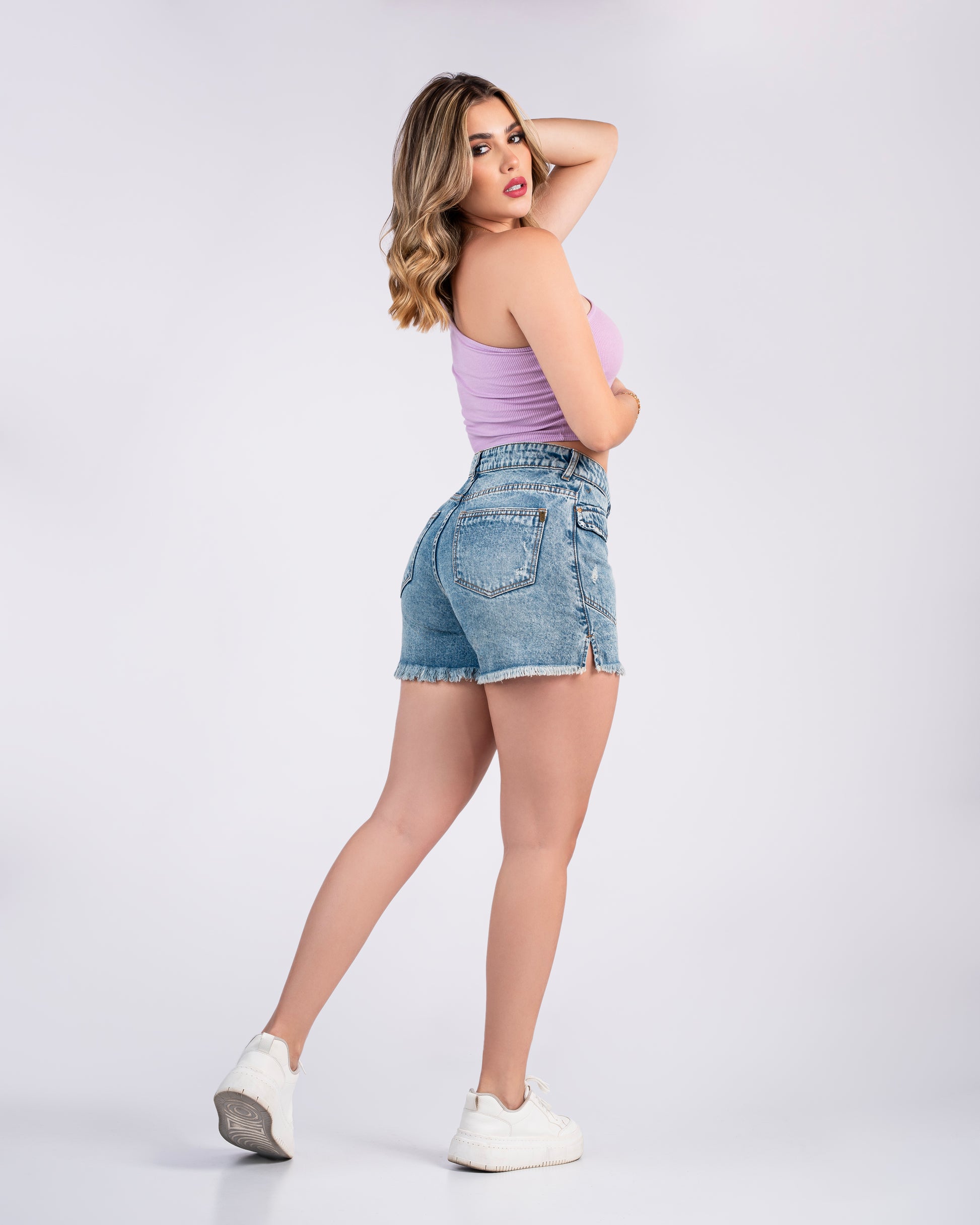👖🐺Short denim para mujer desgastado, tiro alto, ruedo desflecado y 4 bolsillos. El equilibrio perfecto entre relajado y cool para climas cálidos.