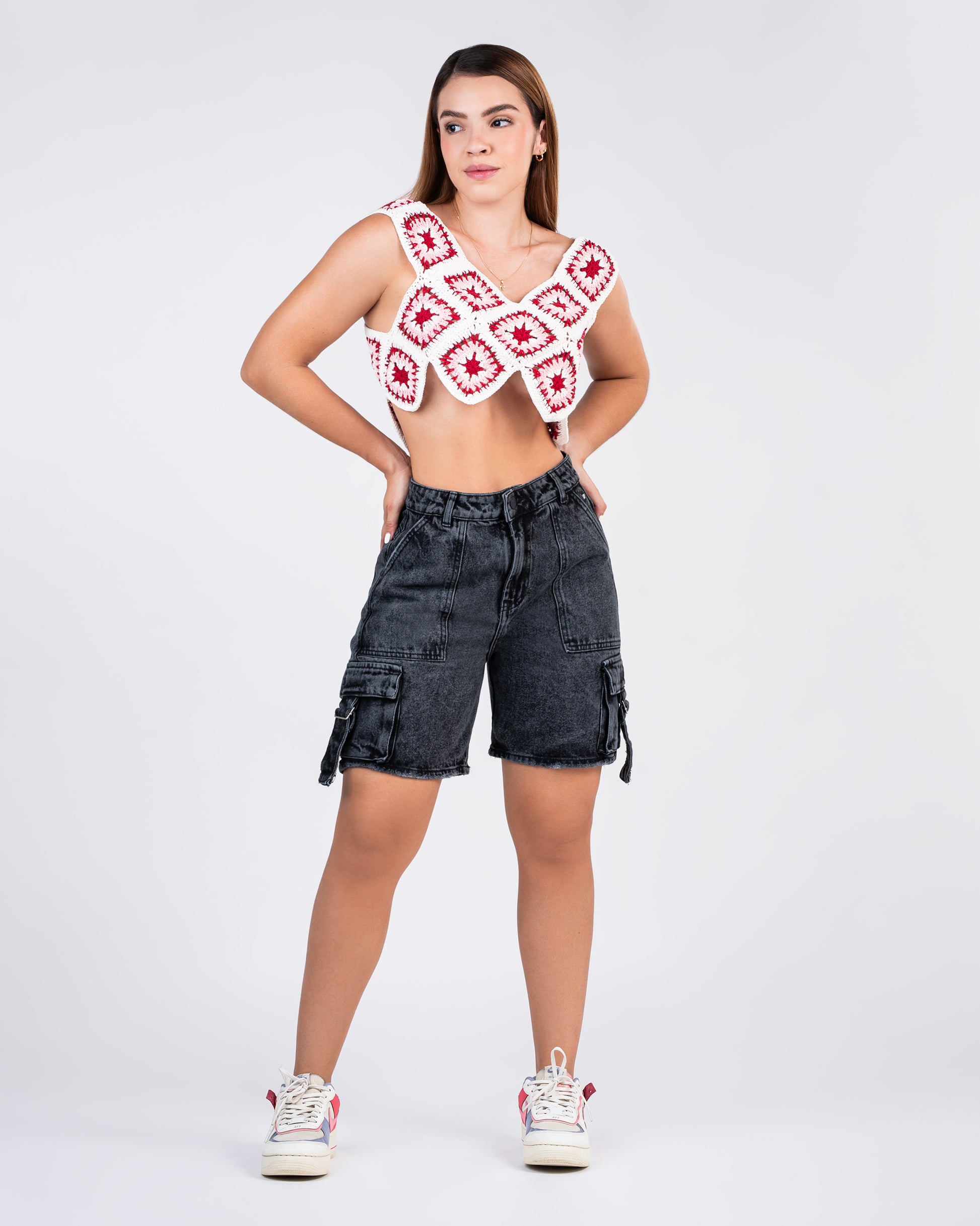 👖🐺Short denim para mujer desgastado, tiro alto, ruedo desflecado y 4 bolsillos. El equilibrio perfecto entre relajado y cool para climas cálidos.