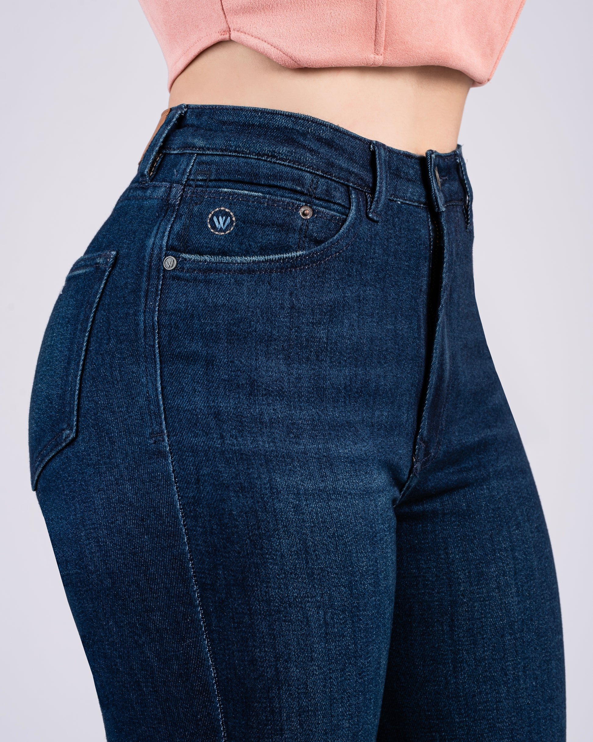 👖🐺Jean Flare fit(acampanado), tiro alto, detalle en pretina, tono azul claro, diseño cinco bolsillos, cintura ajustada, pierna holgada y bota abierta.